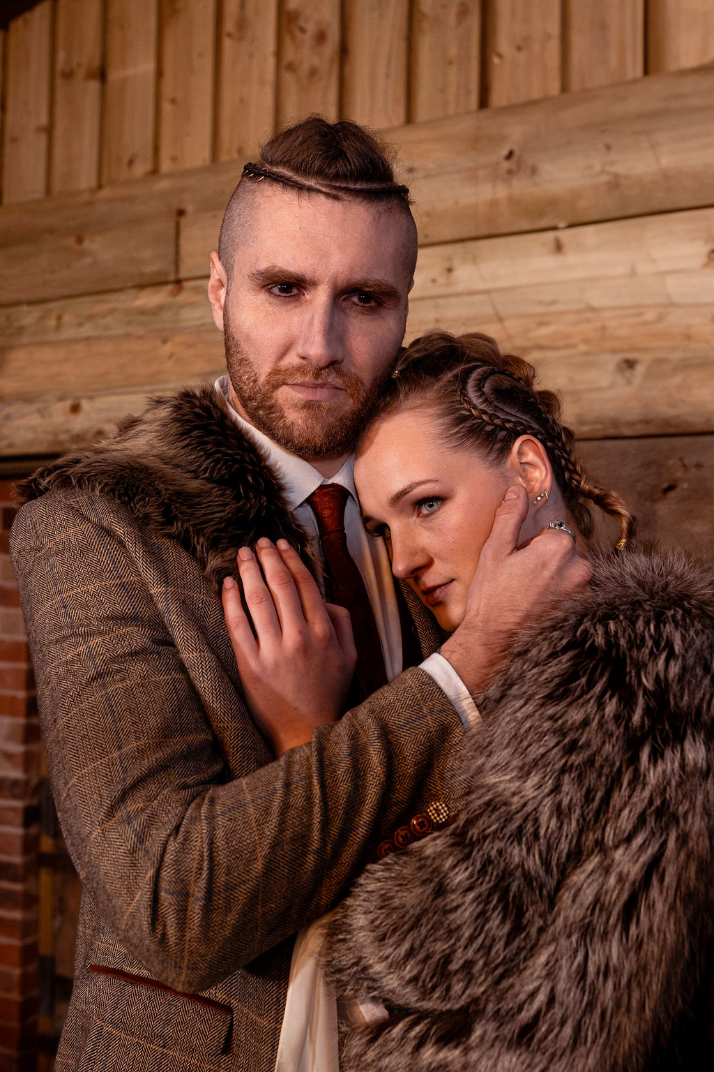 “Viking weddings typically took place outdoors, so we picked Deighton Lodge as a beautiful, rustic barn venue surrounded by plenty of open space. Although due to the -4 degree weather on the day of the shoot, we mostly shot in their gorgeous barn space.