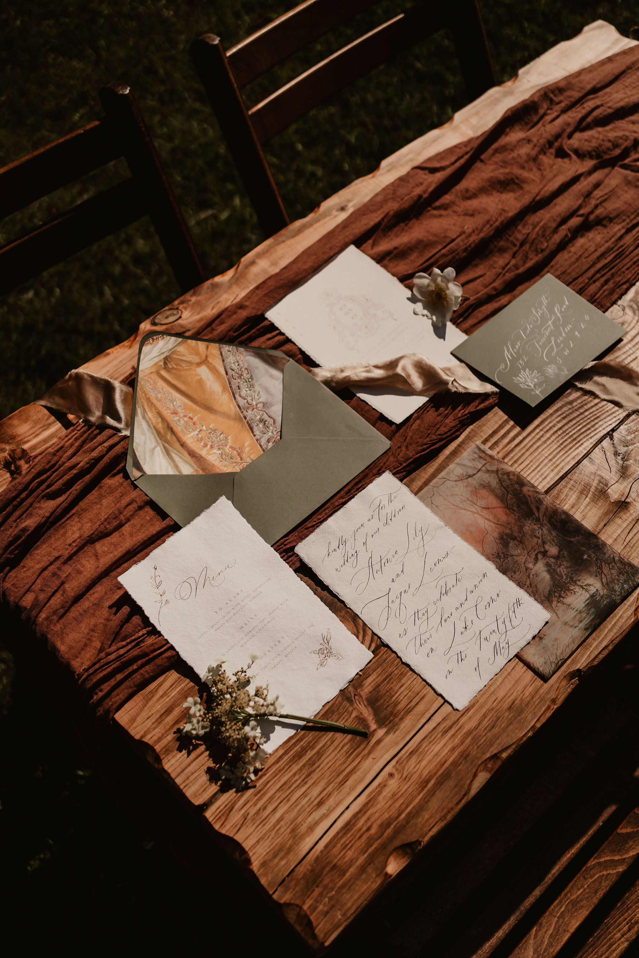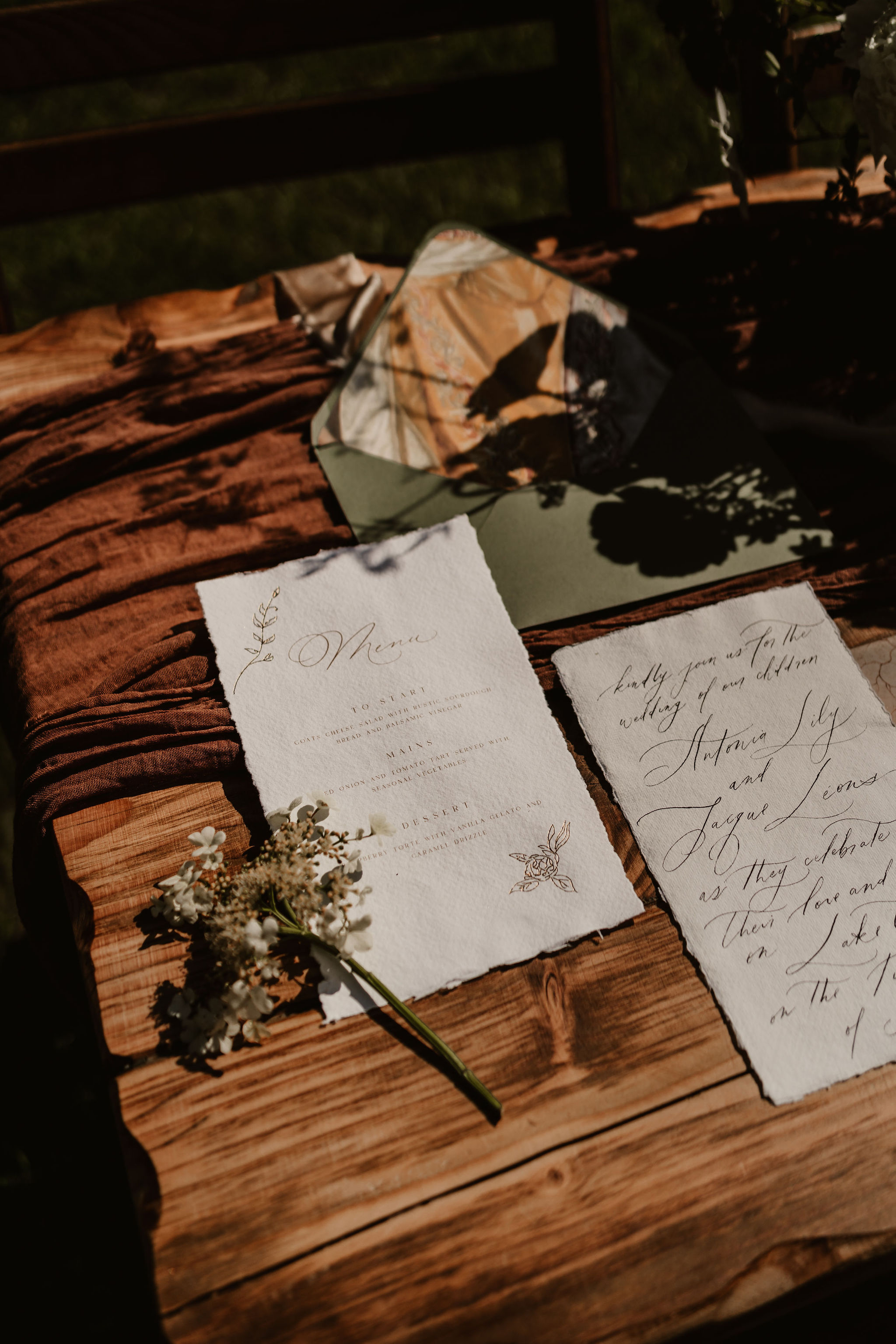 Itβs the details that bring this style together so beautifully. The bohemian wedding stationery by Laura Elizabeth Patrick brilliantly ties the theme together with handwritten calligraphy and deckled edges. Letβs not forget the beautiful wedding cake by Scrum Diddly Cakes – 4 gorgeous tiers with hand-made sugar flower decoration.Β