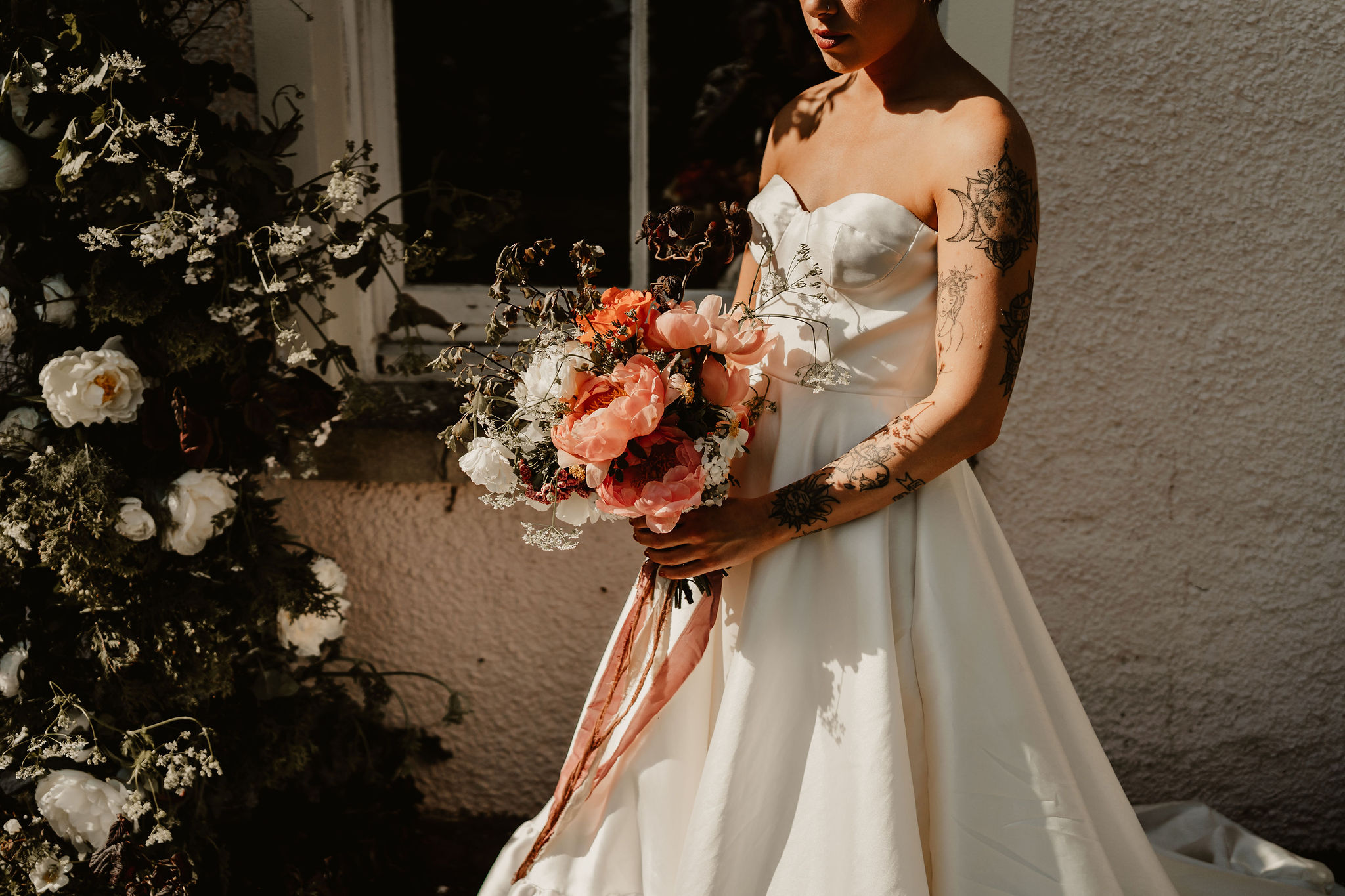This autumn micro wedding took place in Penarth, Wales. We love the way this elegant and modern style retains a boho free-spiritedness. Perfect for autumn, the shoot revolves around a burnt orange and burgundy colour palette, with dashes of sage green bringing a gorgeous earthiness.