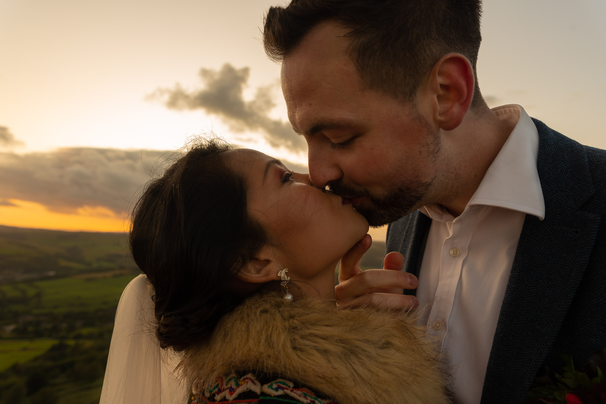 The models, Nattie & Chris are a real life couple, and aren’t they gorgeous! Outdoor wedding ceremonies are becoming more and more popular, with people longing for something simple and close to nature. This autumn wedding ceremony took place at Curbar Edge, orchestrated by celebrant Helen Jubb. The team managed to capture this dreamy sunset too- what perfect timing!
