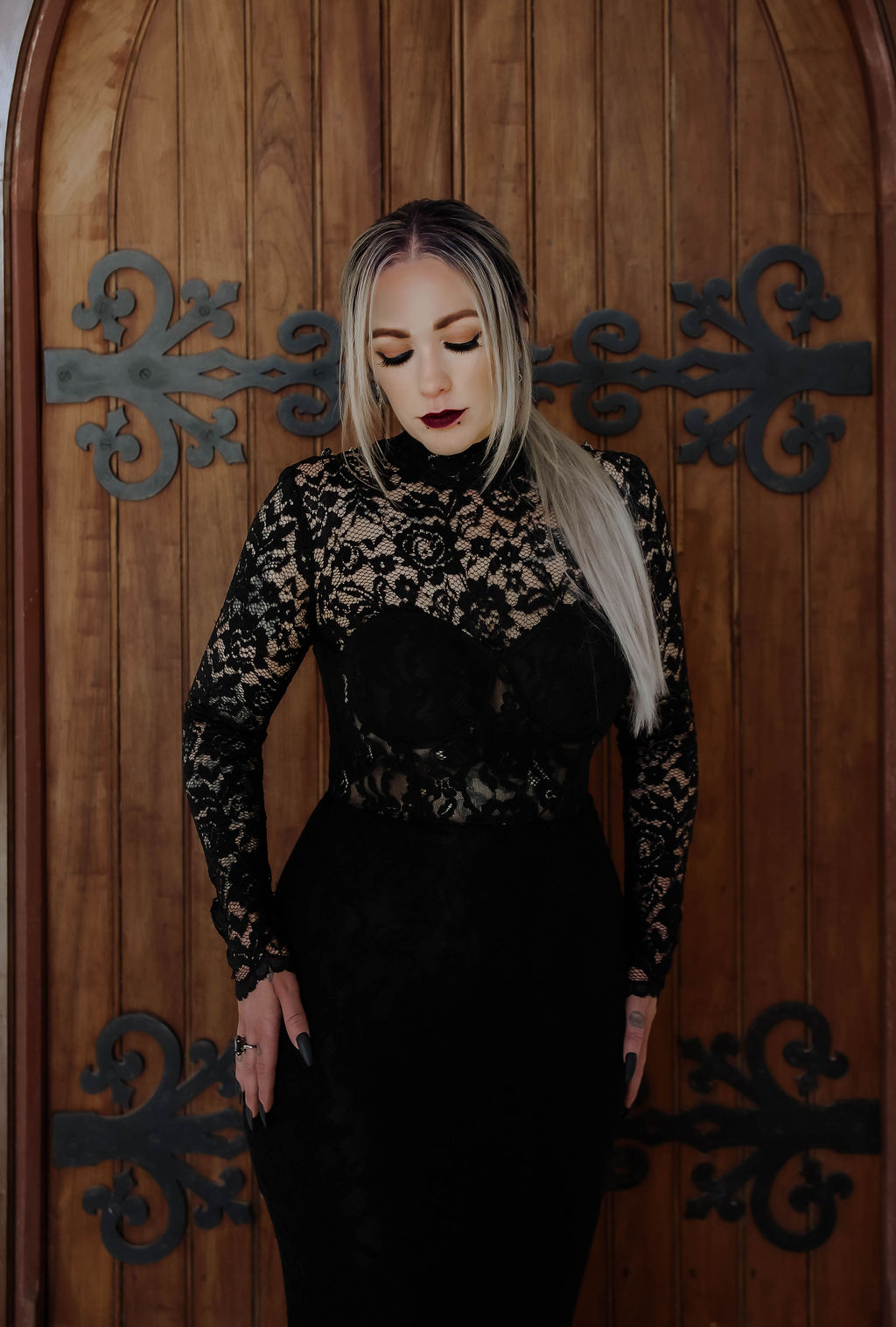 Get hitched in a gothic black wedding dress and customise to suit your style. It's sure to match your non traditional, alternative wedding day.