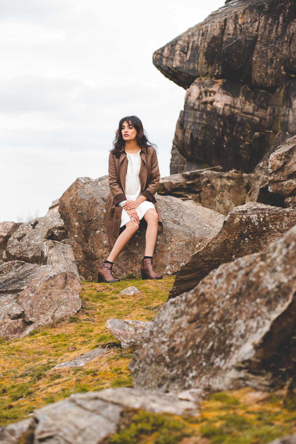 This gorgeous, editorial style photoshoot was born out of the concept of ‘Bridal Wilderness’ and is an expansion on the idea of an unconventional bride- bold and fearless. Captured by Timothy James Photography, it aims to explore themes of elegance, femininity and power, telling a story of the rebellious bride left to express herself and assert her presence. The ideas are enhanced by the rocky landscape of Beacon Hill Country Park in Loughborough. The setting itself is reflective of the bride- beautiful, untameable and powerful. We’re in love with this casual wedding look and think you will be too!