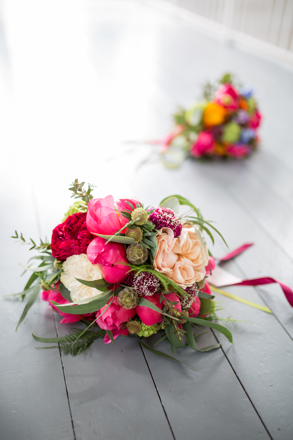 The pops of colour in this shoot are super effective, really standing out against the white walls and countryside. For a ‘cool and colourful’ wedding, you don’t need colour everywhere as it’s effective enough in small splashes. The balloons by Think Bubble Party and wedding bouquets from Flowers By EG work perfectly! You can also add quirky pops of colour through furniture and props from companies like Locate To Create. Props make for great photo opportunities! Speaking of photo opportunities, how cool are the vintage cars from Quadriga Wedding Cars?
