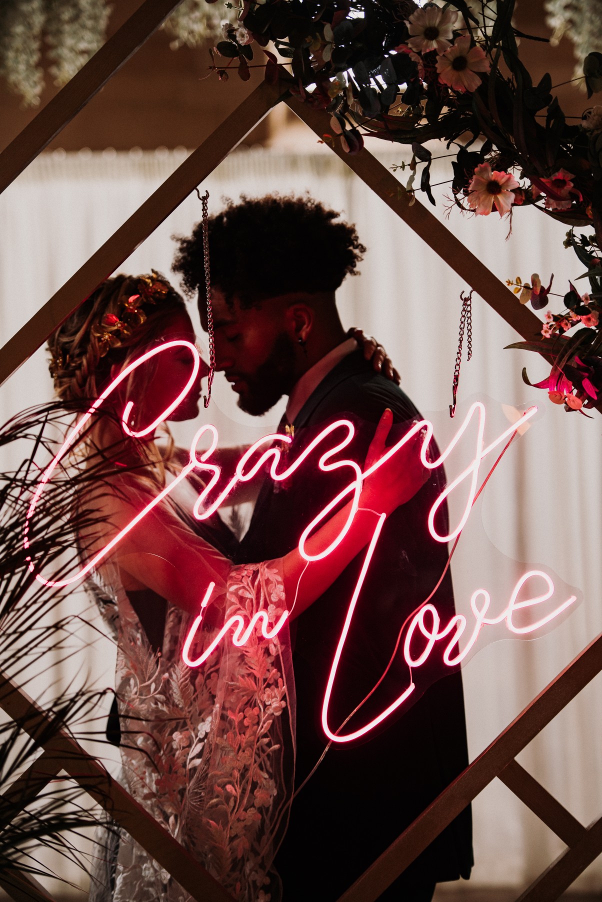 Did anyone else join the lockdown house plant craze? We sure did! This dark tropical wedding at Sneaton Castle is lighting up our plant-loving hearts! This shoot, captured by Paylor Photography mixes neon lights with tropical foliage to create a dark and sumptuous wedding scene. These photos prove that you can take a traditionally ‘conventional’ wedding venue and turn it into your unique fantasy. Stay tuned for epic wedding styling, an alternative wedding dress & a big gold pineapple!