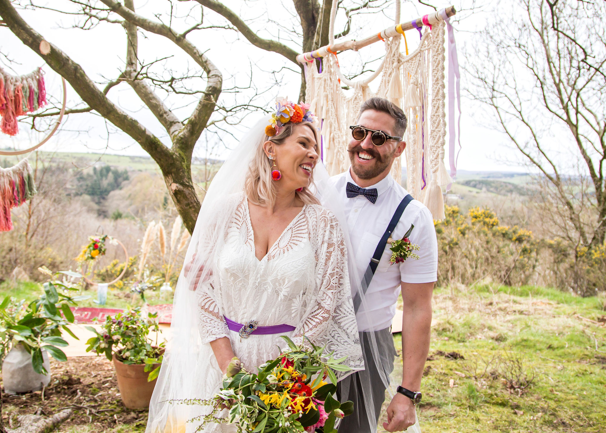Kirstie from Daze Photography and Film organised this shoot at Yorkshire Yurts’ new wedding venue Yurtshire. This stunning location has amazing views with an outdoor ceremony spot, a beautiful lake, a stone bridge and several luxury glamping yurts. What better place for a disco festival wedding?