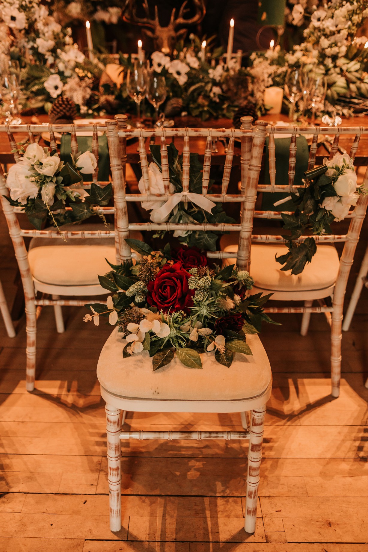 There’s a cosy and intimate feel created with candles by Dazzling Décor and rustic tables and chiavari chairs from Abbey Catering. A delicious feast was provided by Bay Tree Foods to bring the scene to life.