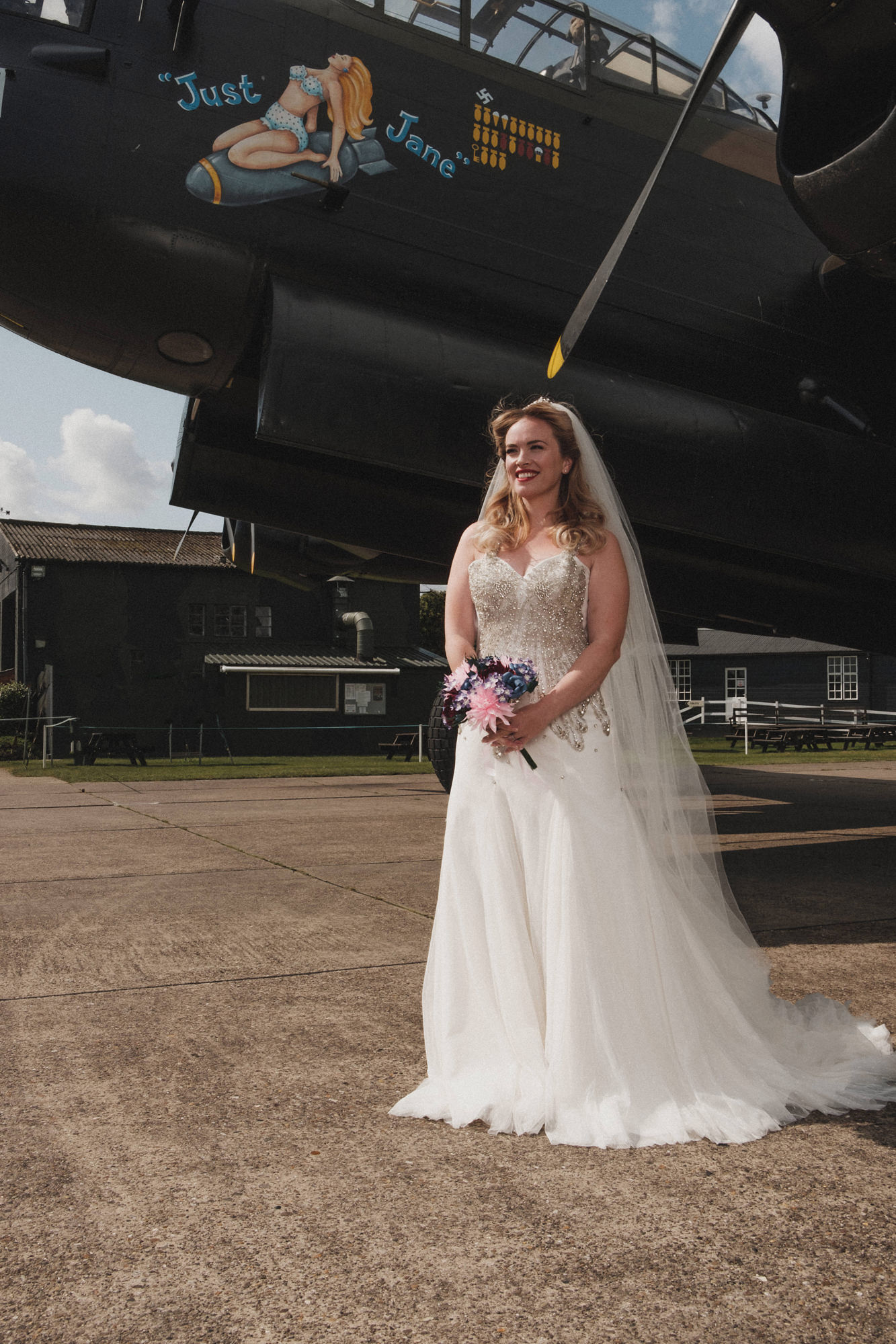 It goes without saying, the war was a bleak time with countless dark days. People lived through what most struggle to comprehend today but were resilient, finding light and fun in the comfort of normal life. People carried on and weddings still happened. This heritage aviation wedding shoot took place at Lincolnshire Aviation Heritage Centre, organised by an awesome group of suppliers with a vision of paying homage to the work of the incredible museum and all those who went before. The idea, originally the brainchild of Gillian from Bridal Reloved Caistor, was born from a desire to bring the work of the centre to a new audience. The intention of this wedding shoot is to add another layer to the recognition of the many brave souls who gave everything, and those working tirelessly today to keep these memories alive.