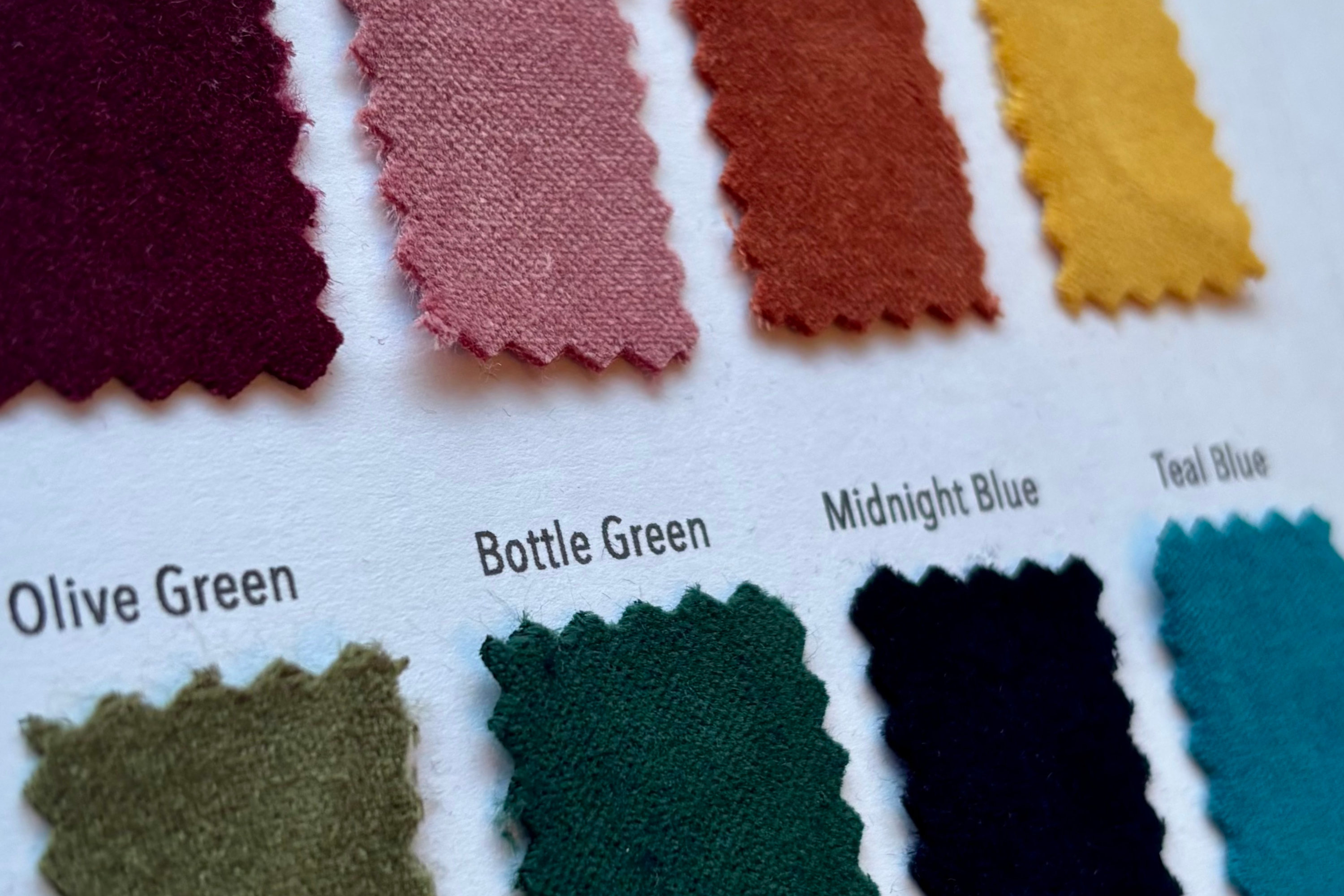I craft each banner from 100% cotton velvet in a rich palette of jewel colours, creating a piece that looks beautiful in your wedding photographs. You can order colour sample cards to see (and feel!) the fabric and shades in person.