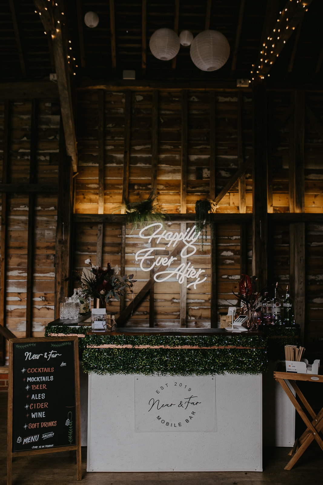 Last but not least… No wedding is complete without a bar! Near & Far Mobile Bar is the perfect addition to this shoot. When decorating a venue from scratch in a place that doesn’t have its own bar, finding something that matches your style is essential! It will complete the look and add to the atmosphere.