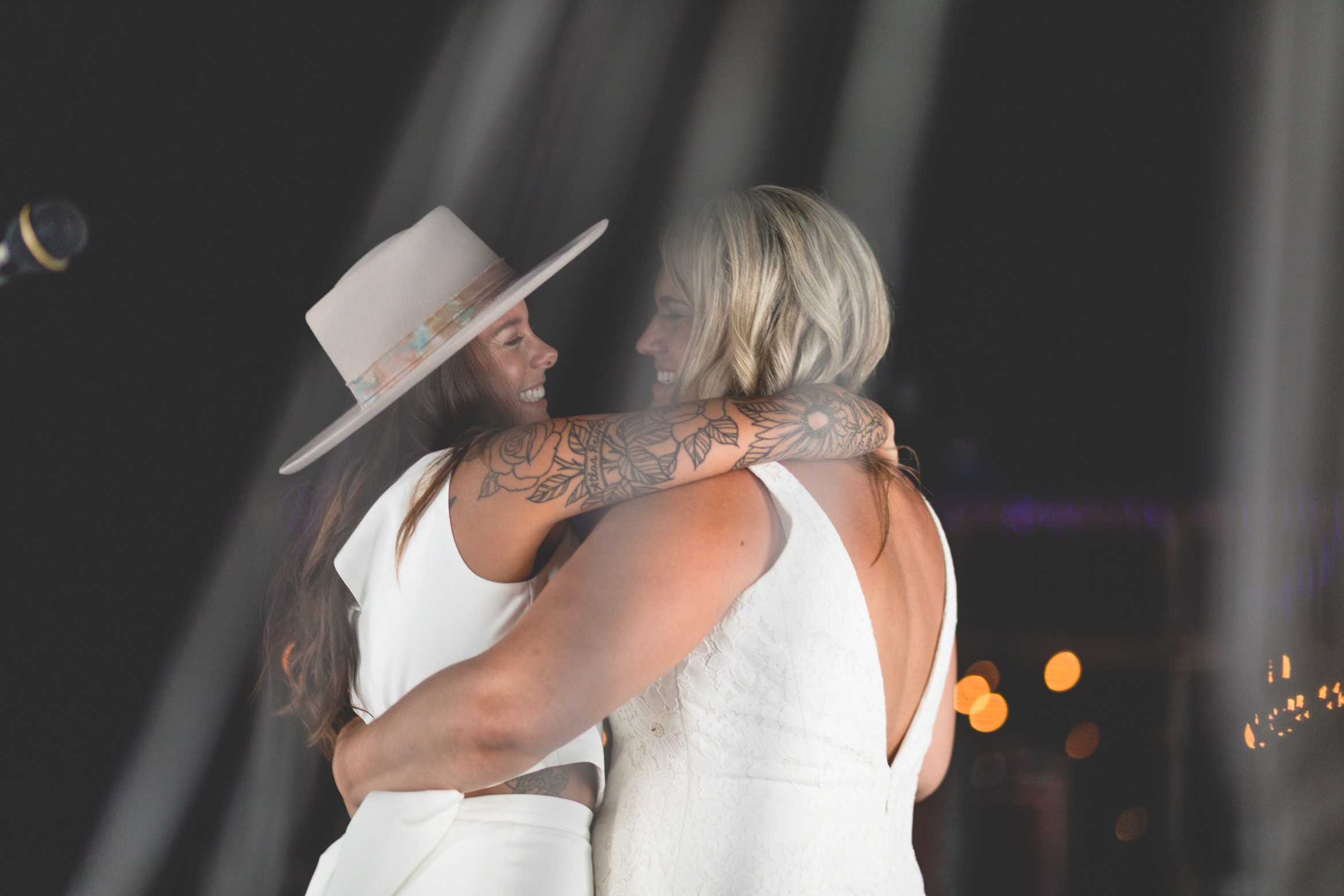 Lindsey and Bri livestreamed their wedding ceremony to their guests, who watched from their cars. The ceremony was full of personal touches with speeches from their children and friends. After they said their vows, Lindsey serenaded Bri with an original song! The guests honked enthusiastically from their cars as the brides had their first dance. How romantic! You can watch the whole livestream here.
