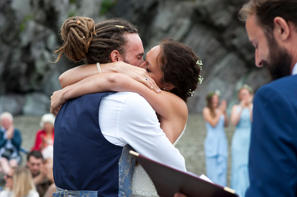 And Cornwall certainly provides a stunning backdrop. Bridal preparations took place in a yurt before heading, via the cliff top, down to the secluded beach. The brideβs brother conducted the wedding ceremony β another personal touch. There was no formal seating for the beach ceremony β everyone just chose a place to sit on the sand.
