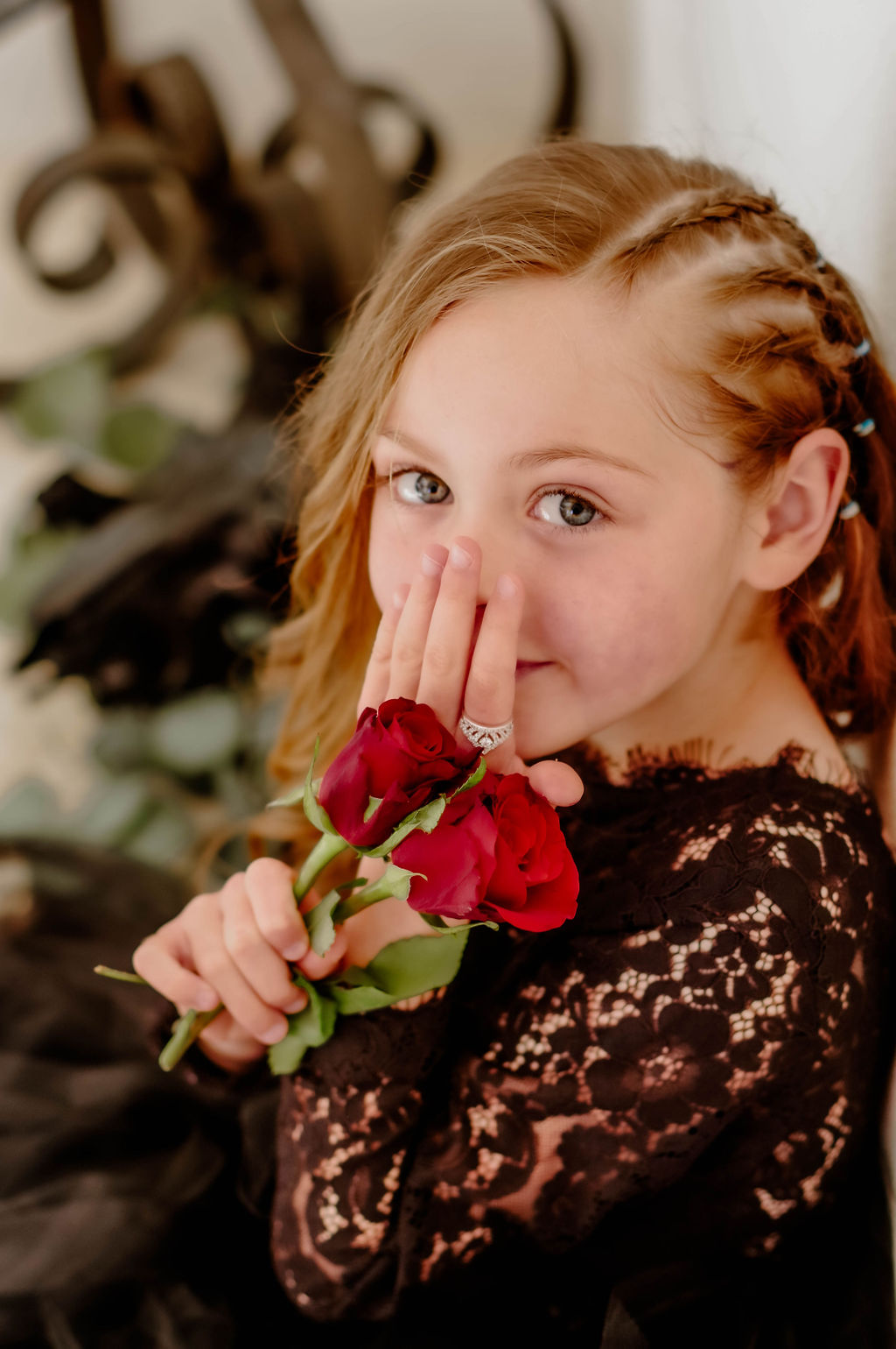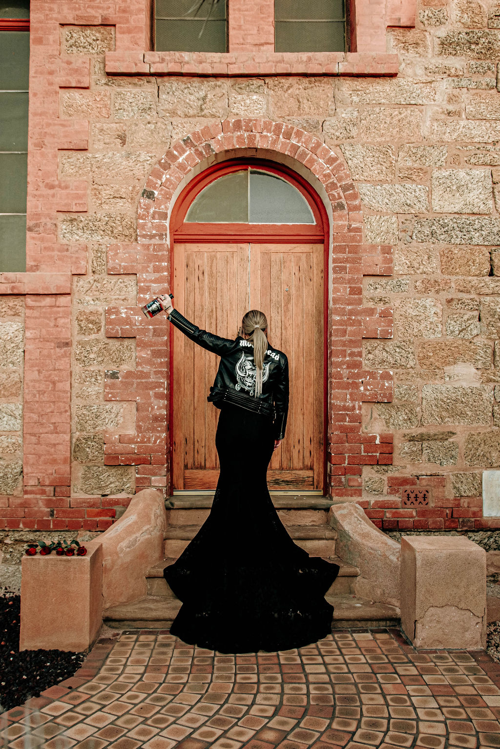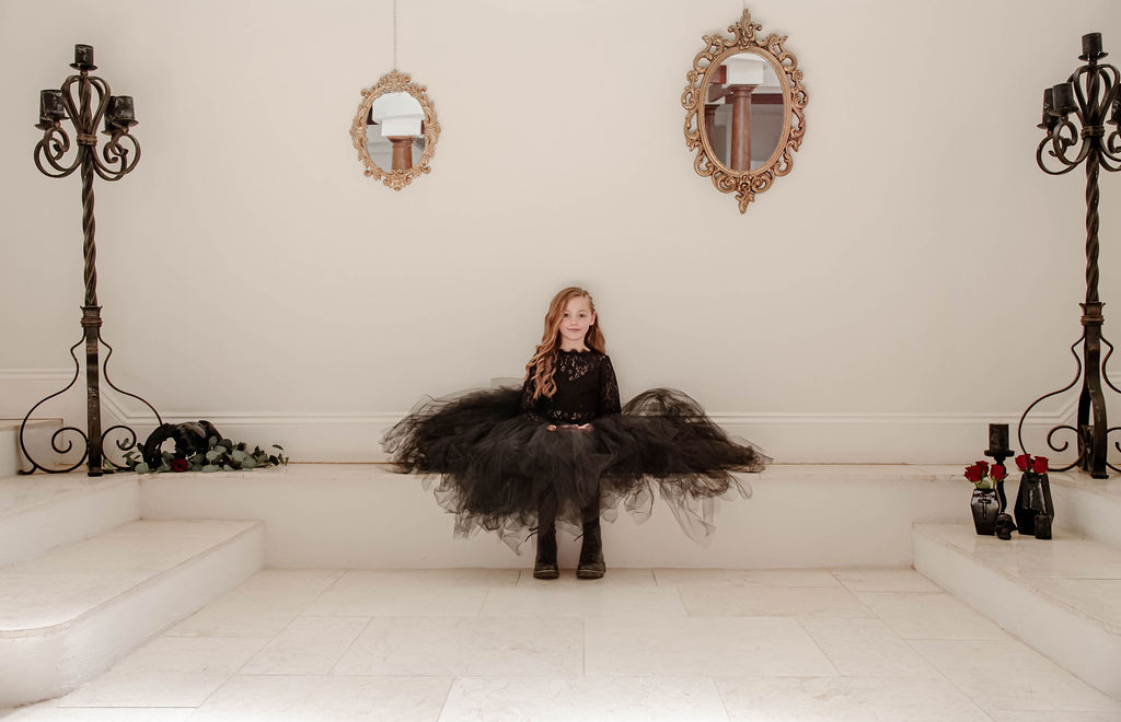 Shannon and Mark’s daughter is absolutely rocking the gothic bridesmaid look! She chose the look herself, drawing inspiration from Pinterest. Shannon found a black tutu on Etsy and the look revolved around that. Their daughter had her own ring and some red roses to symbolise her inclusion in the marriage.