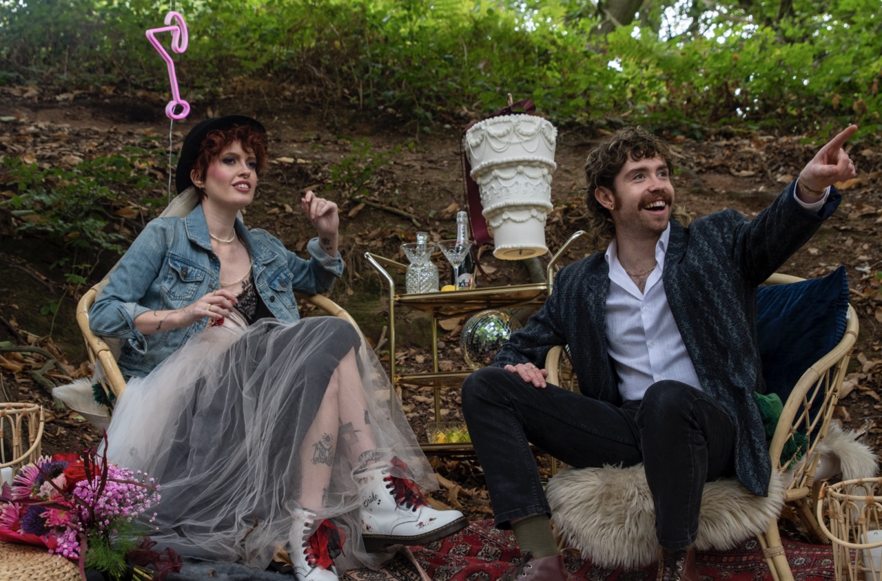 We are LOVING this Stranger Things wedding theme. The team wanted to create a βworld within a worldβ with this gorgeous woodland backdrop, keeping the 80s aesthetic and adding in some quirky details to nod to the TV series. Bunch Floral Design created the wonderfully eclectic flowers for this shoot, with the intention of them looking slightly odd and almost βalien lookingβ. The 80s vibes were brought by Hint Of Vintage Hire who created the retro cocktail lounge set up, complete with wicker chairs and a drinks cart! A little touch of βThe Upside Downβ was added with this stunning wedding cake by Amy Bakerβs Cakes – so classy with a quirky twist!Β Β